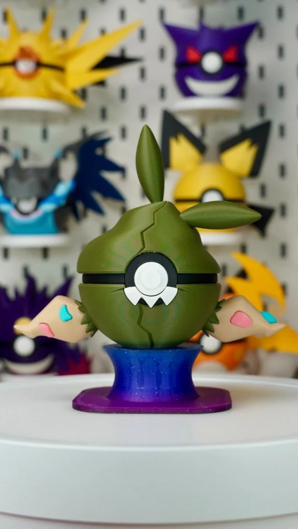 Bring your favorite Pokémon to life with this 3D printed, Pokémon-inspired Poké Ball featuring Celebi! Each Poké Ball is carefully crafted with high-quality materials, making it perfect for display, gifting, or adding to your collection. Whether you're a seasoned trainer or just starting your journey, this Poké Ball is a must-have for any Pokémon fan.
