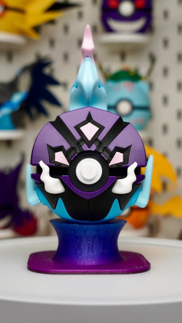 Unleash the power of space with this Palkia Pokéball – a stunning 3D-printed collectible inspired by the legendary Pokémon! Crafted with precision and high-quality PLA filament, this Pokéball is perfect for collectors, display shelves, or gift giving.