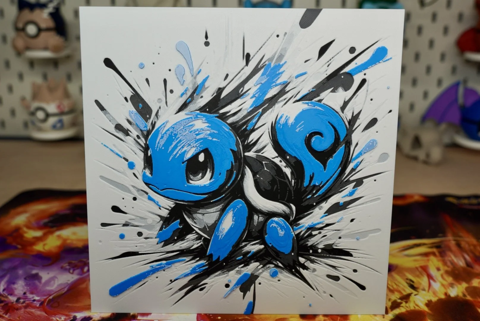 Bring the cool with this Squirtle Hueforge wall art – a bold, multicolor 3D printed display (200x200mm / ~8x8 inches) that captures the playful power of this iconic Water-type starter. Add a 3D-effect frame for $10 in starry, galaxy, carbon fiber, or diamond textures. Printed by Ready to Print 3D.